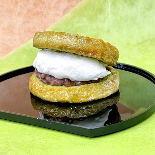 天然酵母の自家製食パンで作る、まあるい形のフレンチトーストに生クリームをたっぷり挟みました。